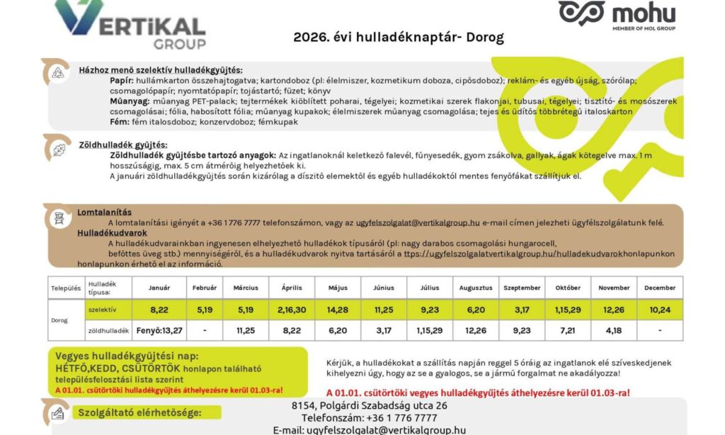 2026. január 17-én szombaton kerül elszállításra a hulladék