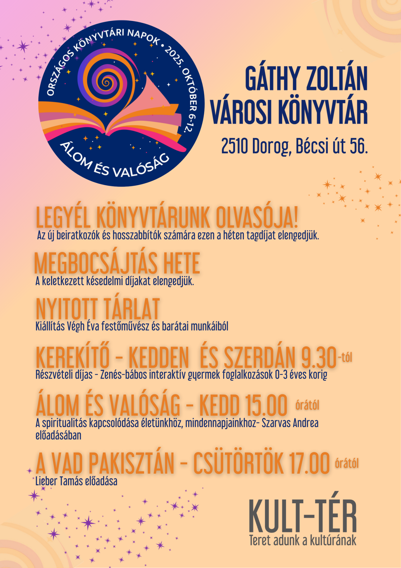 "... Bízunk abban, hogy az egy hét mozgalmas eseményeivel, programjaival is meg tudjuk mutatni intézményeik értékeit, s azt, hogy a magyarországi könyvtári hálózat egy kikerülhetetlen kapcsolódási pont – a természet, az emberek, közösségek, kultúrák és gondolatok között."